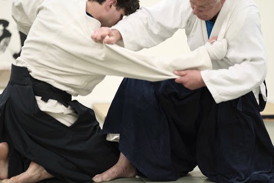 An instruction module from Aikido Extensions with Bruce Bookman, an Aikido Journal Academy course. This innovative take on a traditional technique highlights an elegant transition from Sumi-otoshi to Uki-gatame (knee mount control) and finally to a traditional seated nikyo pin.